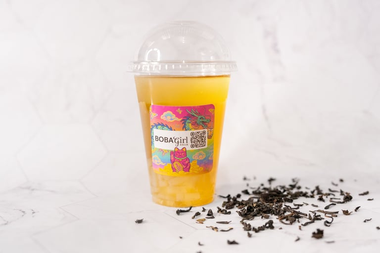 A vibrant blend of bold Assam black tea layered with juicy peach syrup and zesty passionfruit.